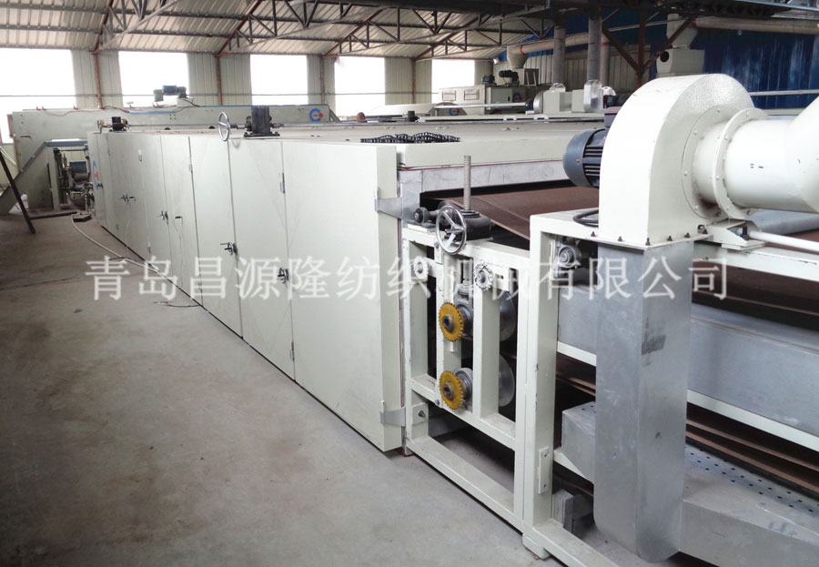 一、無膠棉機(jī)械工藝流程:開包-開鬆機-振動給棉機-梳理機-鋪網機-烘箱-切邊(biān)成卷機