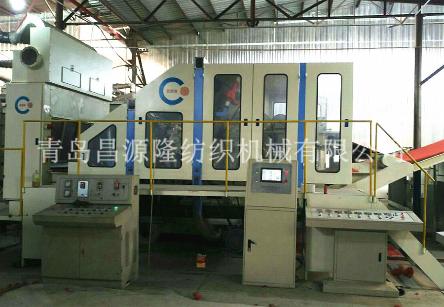 4. CYLSL-梳理(lǐ)機:該機為雙錫林、雙道夫、四雜亂、羅(luó)拉剝(bāo)取。該機所有輥筒都經調質和定性處理後,再精密加工。牆板由鑄鐵加工而成,針布(bù)采(cǎi)用國產優質針布,並配(pèi)有吸風裝置,可減少清機(jī)次數,還帶有走台。具有分梳能力強,產量高等優點。