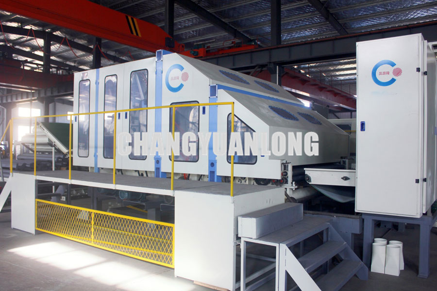 ✤ 用途特點::本機采(cǎi)用雙錫林雙道夫結構,適應滌綸(lún)、丙(bǐng)綸等化學纖維也適應部分天然纖維的梳理成網,鑄鐵機架圓牆板(bǎn),結構穩定,鈑金罩殼激光下料數控折彎,美(měi)觀大方,罩殼氣缸升降,方便安全;所有輥筒動平衡處理(lǐ),跳動度控製在3絲內,運(yùn)行穩定可靠,帶吸邊風機,底座600mm高,方便日常保養檢修。所有電機單獨(dú)變頻控製,並(bìng)裝有金屬探測器。工作輥單獨電機控製,根據錫林(lín)和原料的不同,調節工作輥的速度,使化纖得到最佳的(de)梳理。
