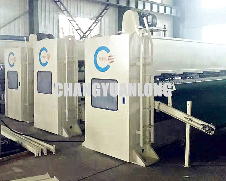 本機用以對成網後的纖網進(jìn)行預針刺,采用最新針板布針(zhēn),使針刺出來的纖網無縱、橫向條紋,並使纖網(wǎng)加工成具有一定強度的針刺織物,供下道工序使(shǐ)用,再經主針刺(cì)及後整理,可獲得各種針刺產品。如過濾材料(liào)、平麵地毯(tǎn)、土工布、油氈基(jī)布、保暖絮片(piàn)等。