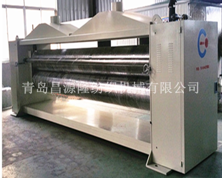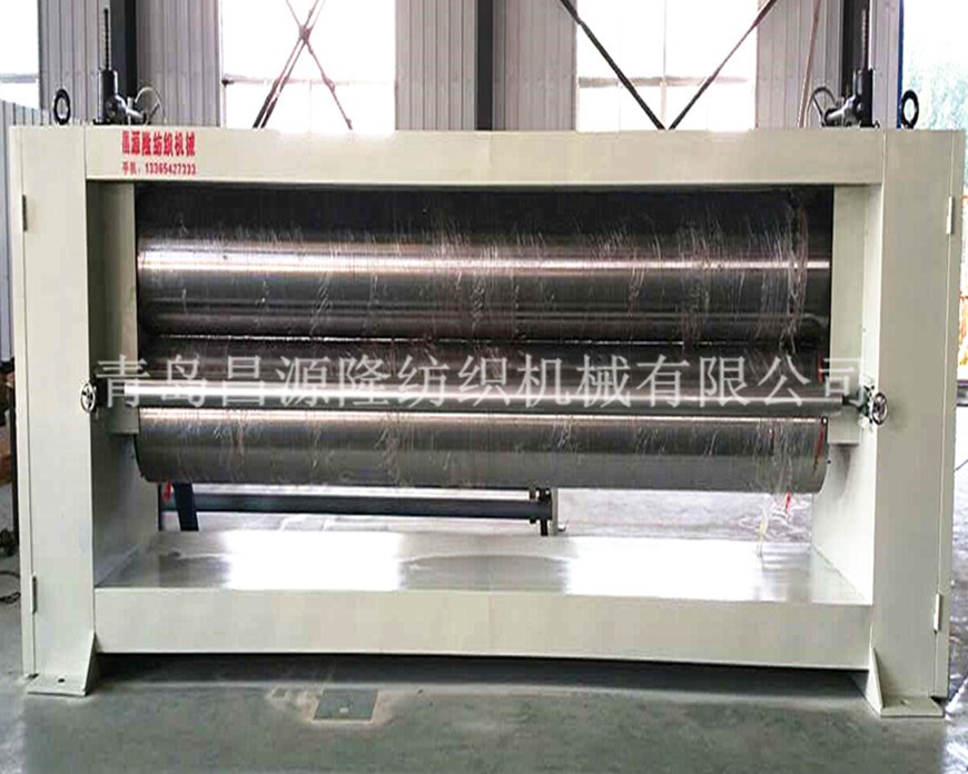 燙光機(jī):燙光機(壓光機、熱軋機)主要用於各種絨類織物如:晴綸(lún)毛毯、人造毛皮、呢絨、精仿毛絨等產品的後整理表(biǎo)麵燙光,經燙光處理後的(de)織物表麵彭鬆柔軟,絨毛順直光亮,可與天然織物相媲美。
