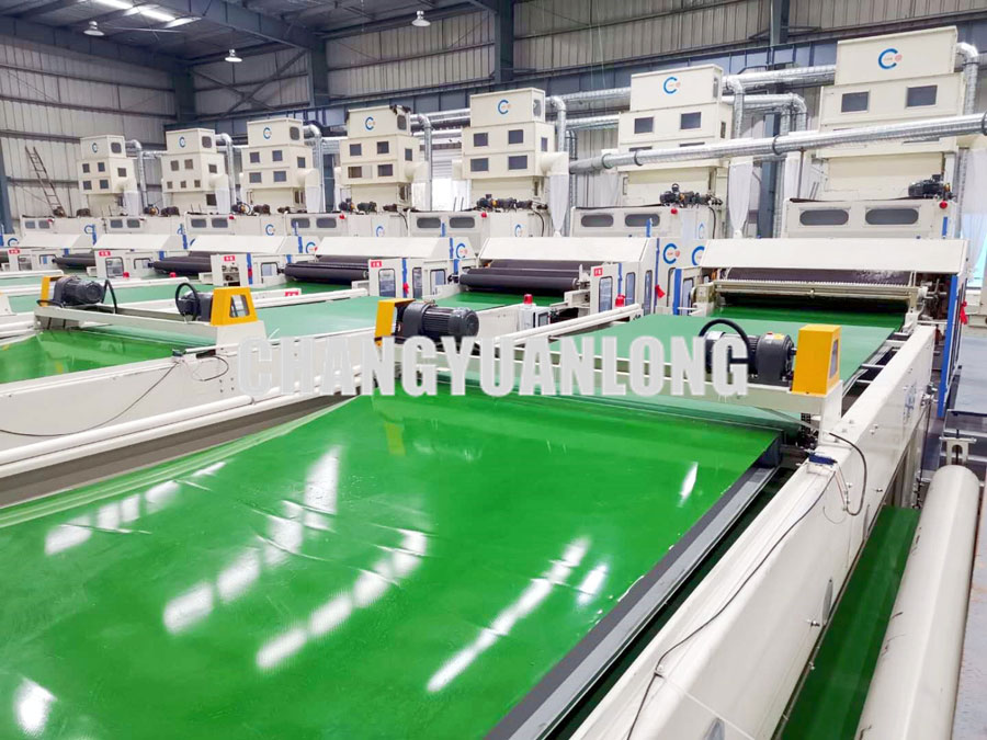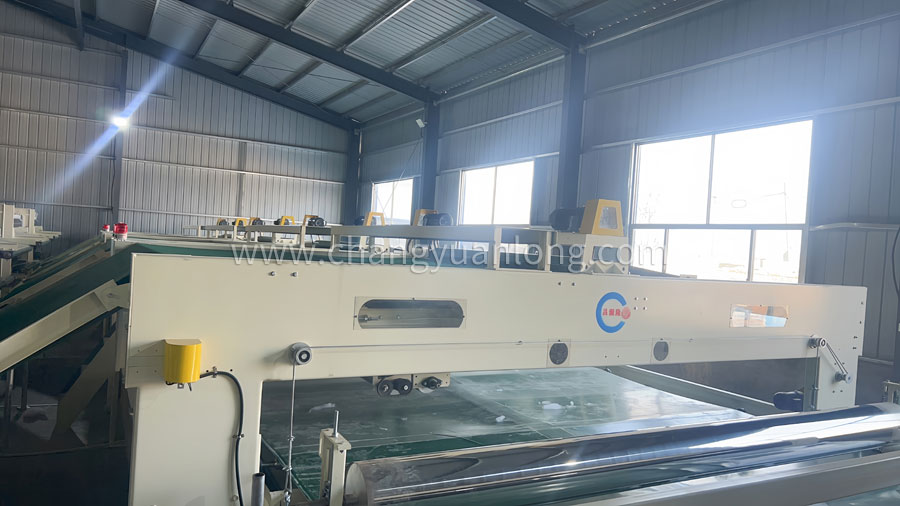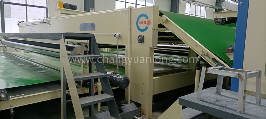 ✤工作原理:通過(guò)移動小車將棉網夾持前進鋪疊在底簾上,由底(dǐ)簾不斷地(dì)將一定厚度的棉網輸入到下一道(dào)工序。
