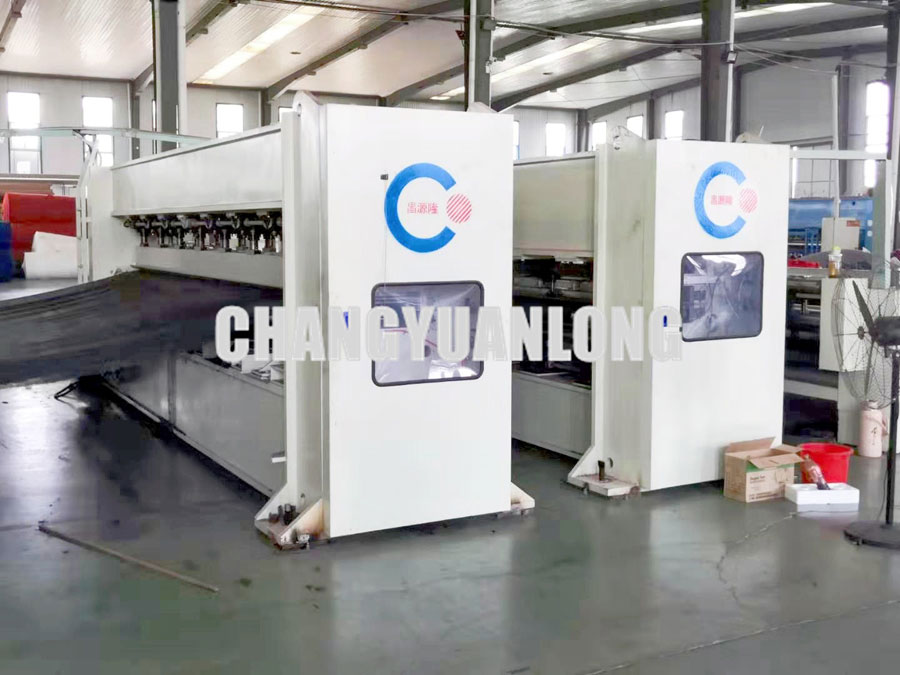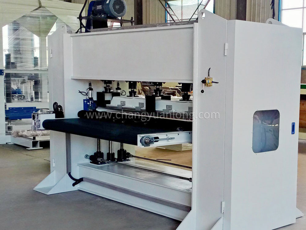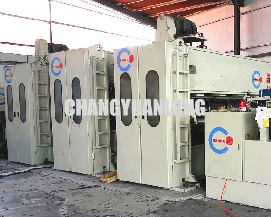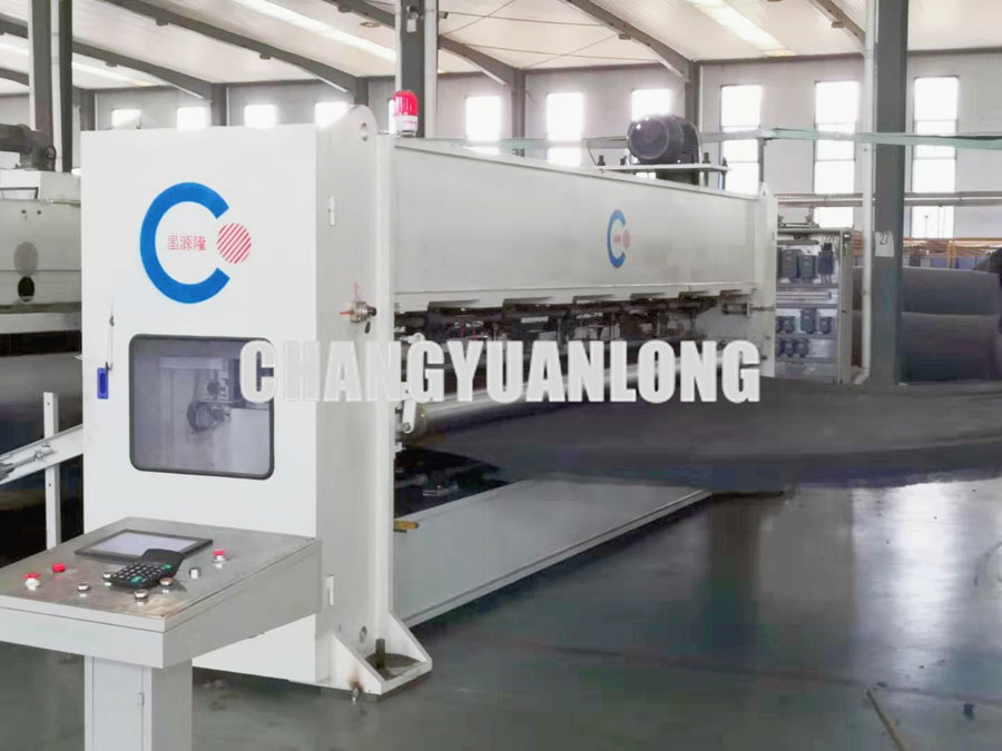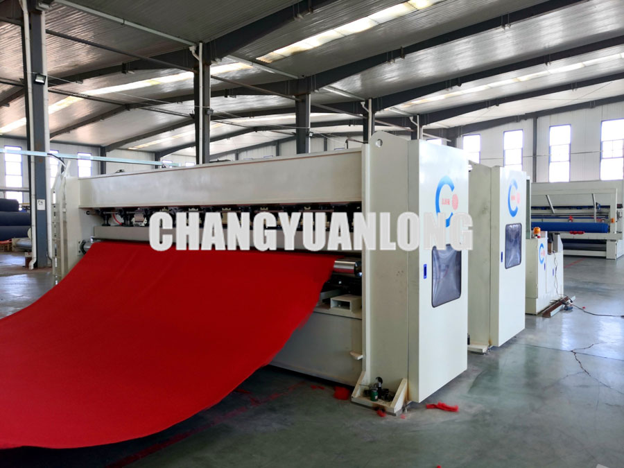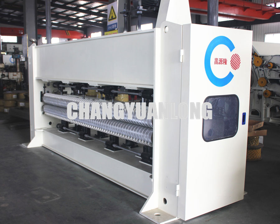 鋪網機將鋪好的棉網喂入針(zhēn)刺區,針刺機對蓬(péng)鬆棉網進行初加工;由一對輥組成的輸出機構將初步針(zhēn)刺的棉網輸出,