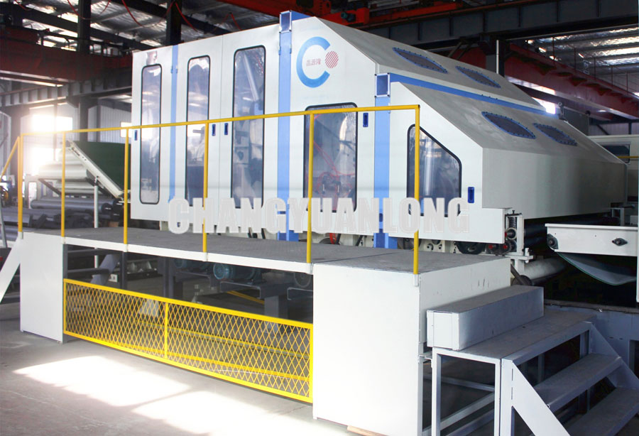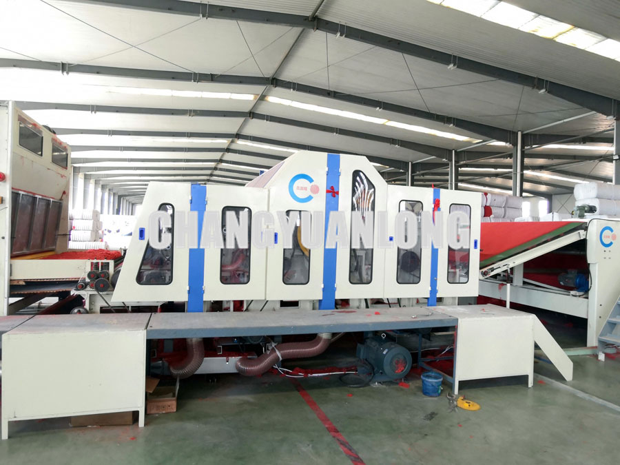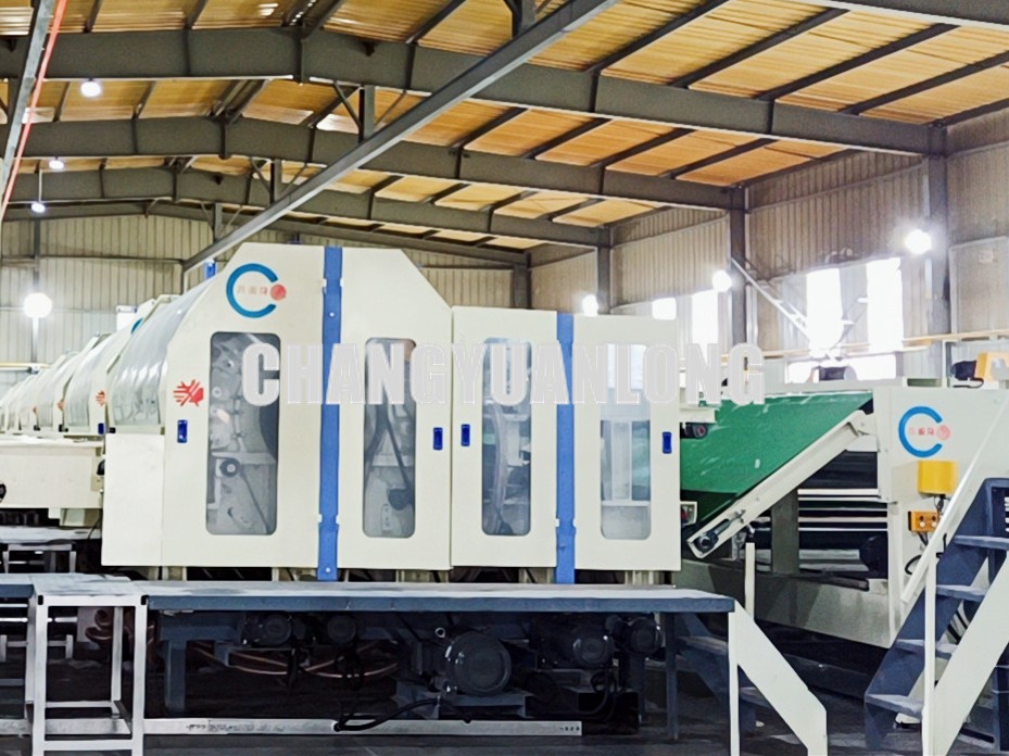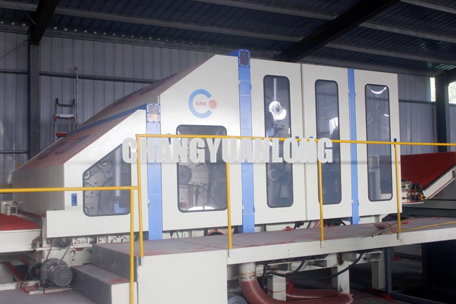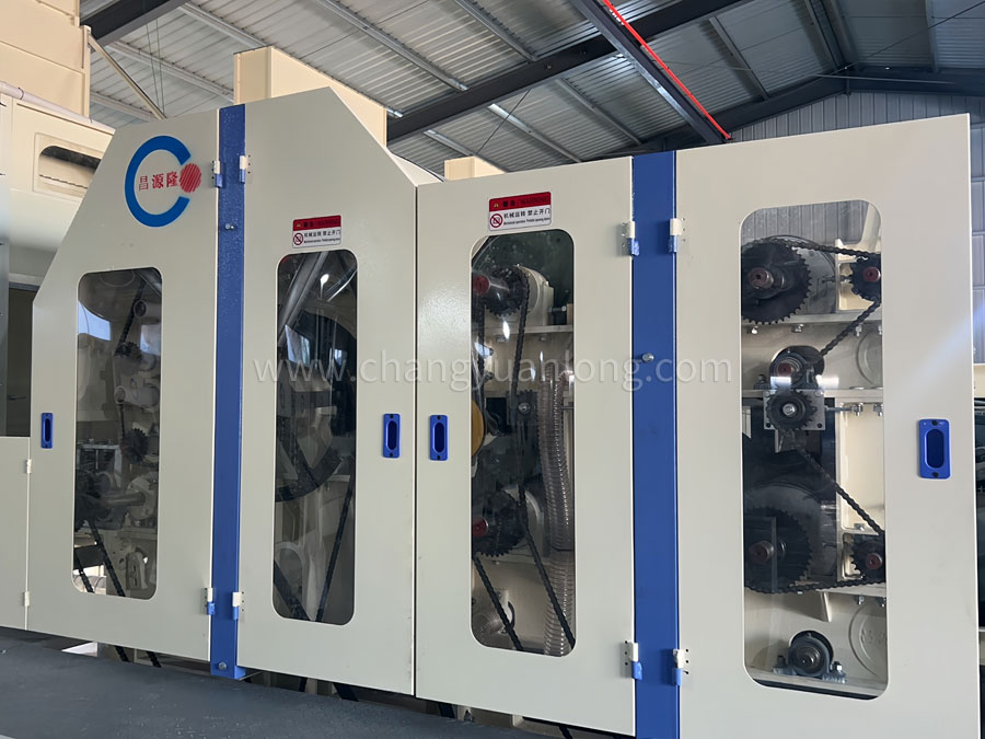 單錫林雙道(dào)夫梳理(lǐ)機:該機為單錫林、雙道夫、四雜亂、羅拉剝取。該機所有輥筒都經調質和定性處理後,再(zài)精密加工。牆板由鑄鐵加工而成,針布采用國產優質針布,並配有吸風裝置,可減少清機次數,還帶有走台。具有分梳(shū)能力強,產量高等優點。