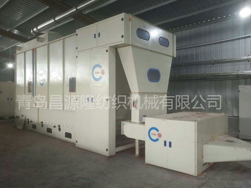 大倉混棉機:對各種(zhǒng)經過初步開鬆的纖維進行充分的混合及存(cún)儲,達到連續生產的(de)目的。
