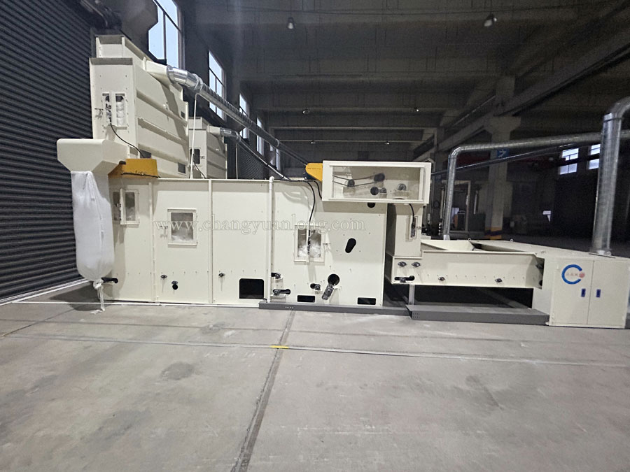混料機:對各種經過初步開鬆的(de)纖維進行充分的混(hún)合及存儲,達到連續生產(chǎn)的目的。多種纖維混合喂入,初步開鬆混合,同時除金(jīn)屬除雜質。